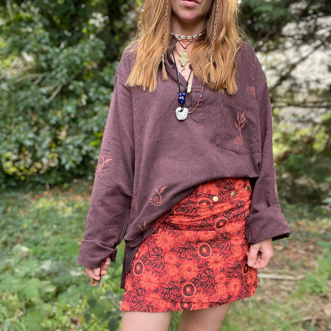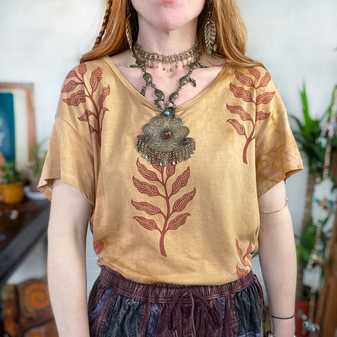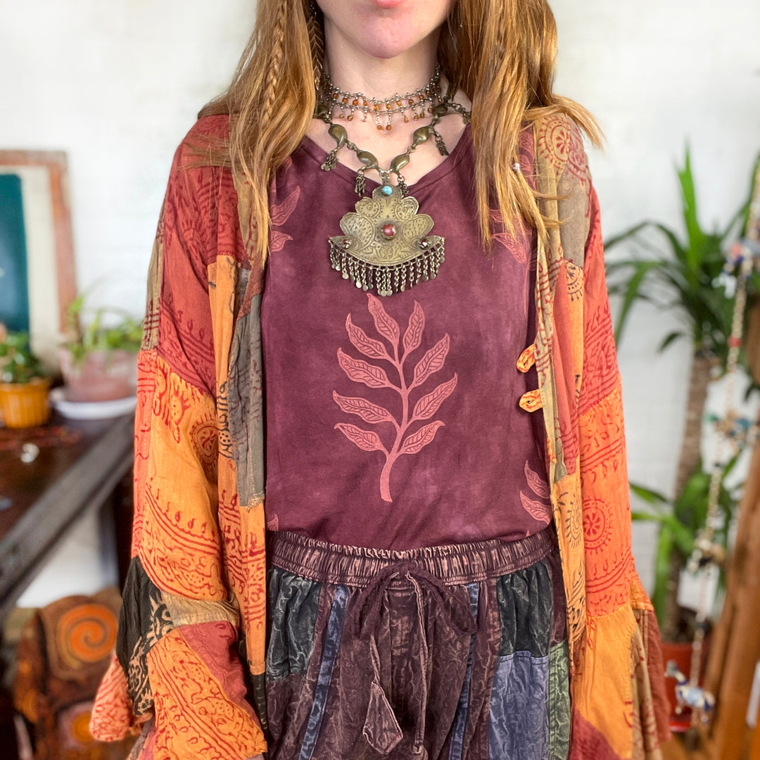 This season, I’ve gathered a small collection of hand-dyed and printed pieces that reflect this shift — soft sweaters, long sleeve tees, and nature-inspired prints that hold the warmth of summer sun and the grounding energy of autumn earth.