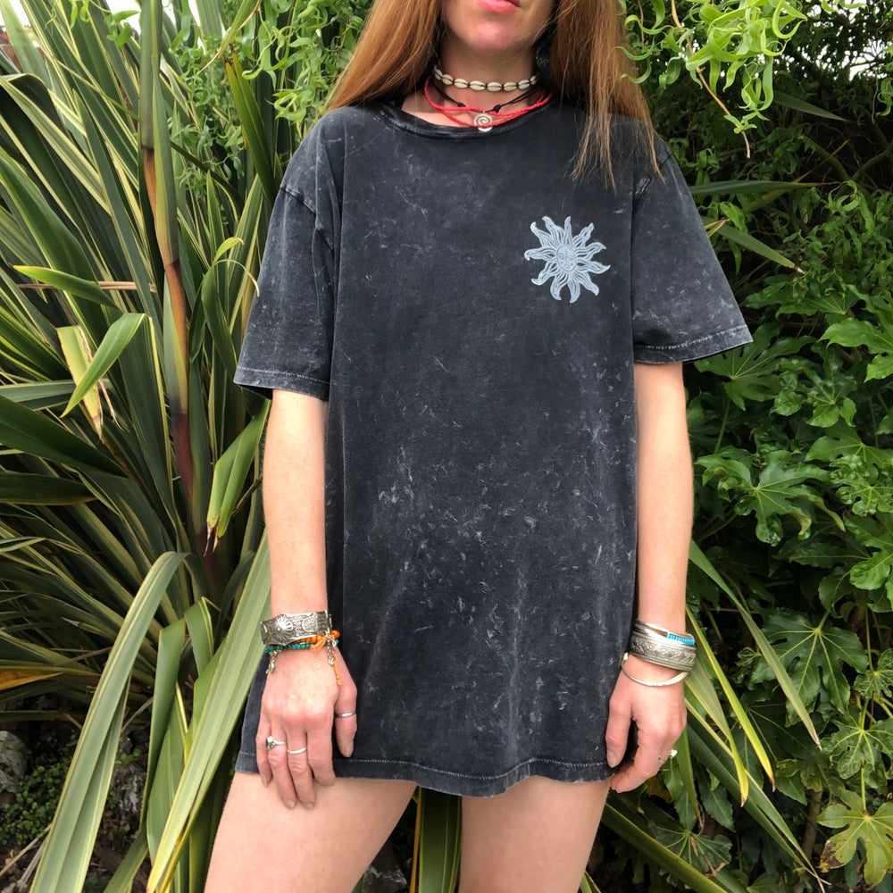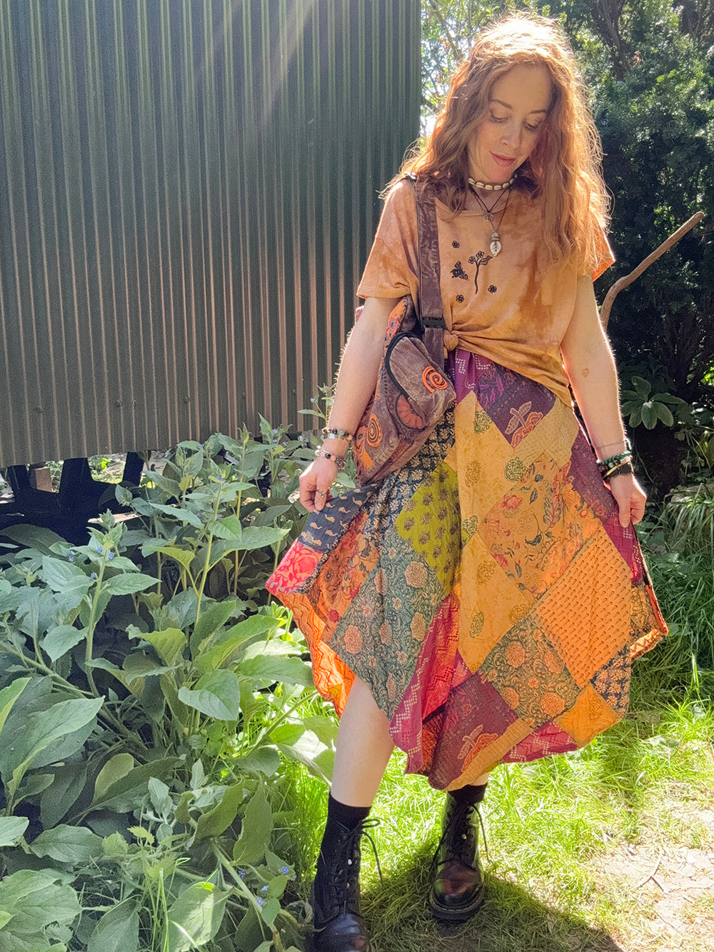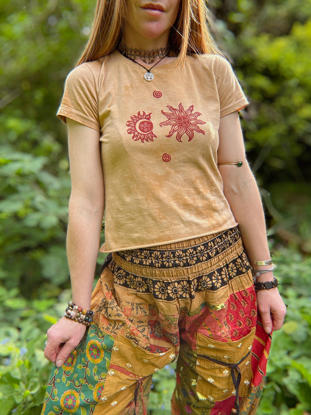 Each piece is made from natural, breathable fabrics—cottons that feel like a second skin— carefully chosen to honor nature and her cycles. Hand-dyed in sun-washed hues and sun-prints. No two are the same, each holding its own story—a moment, a breeze, a beam of golden afternoon light.