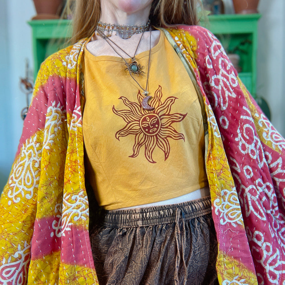 Step into the golden hazy of midsummer with Solstice Reverie, a handcrafted clothing collection that celebrates the radiant magic of the longest day. Inspired by the gentle rhythm of nature, this collection is a love letter to sunlight, wild blooms, and the quiet wisdom of the Earth and her beloved sun.