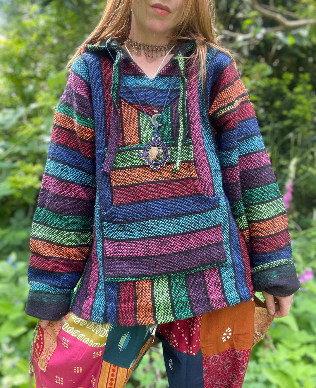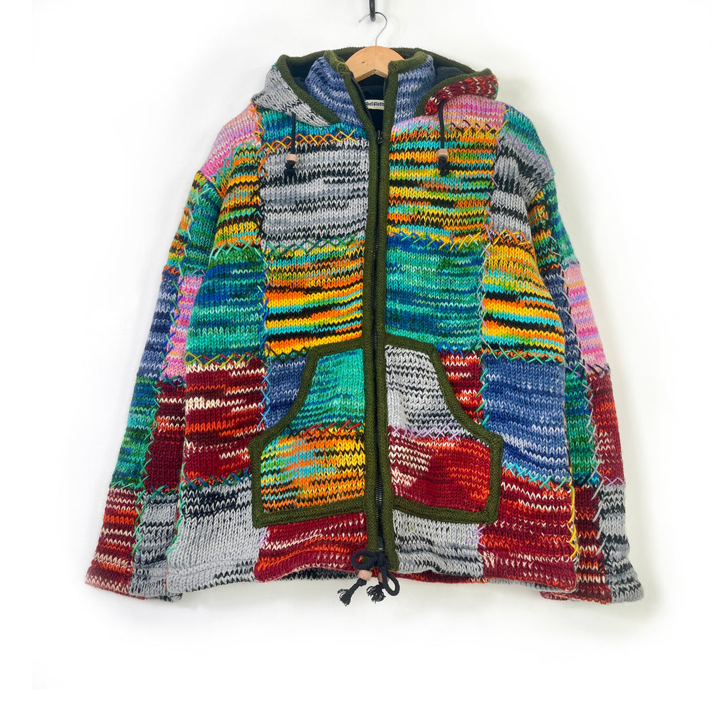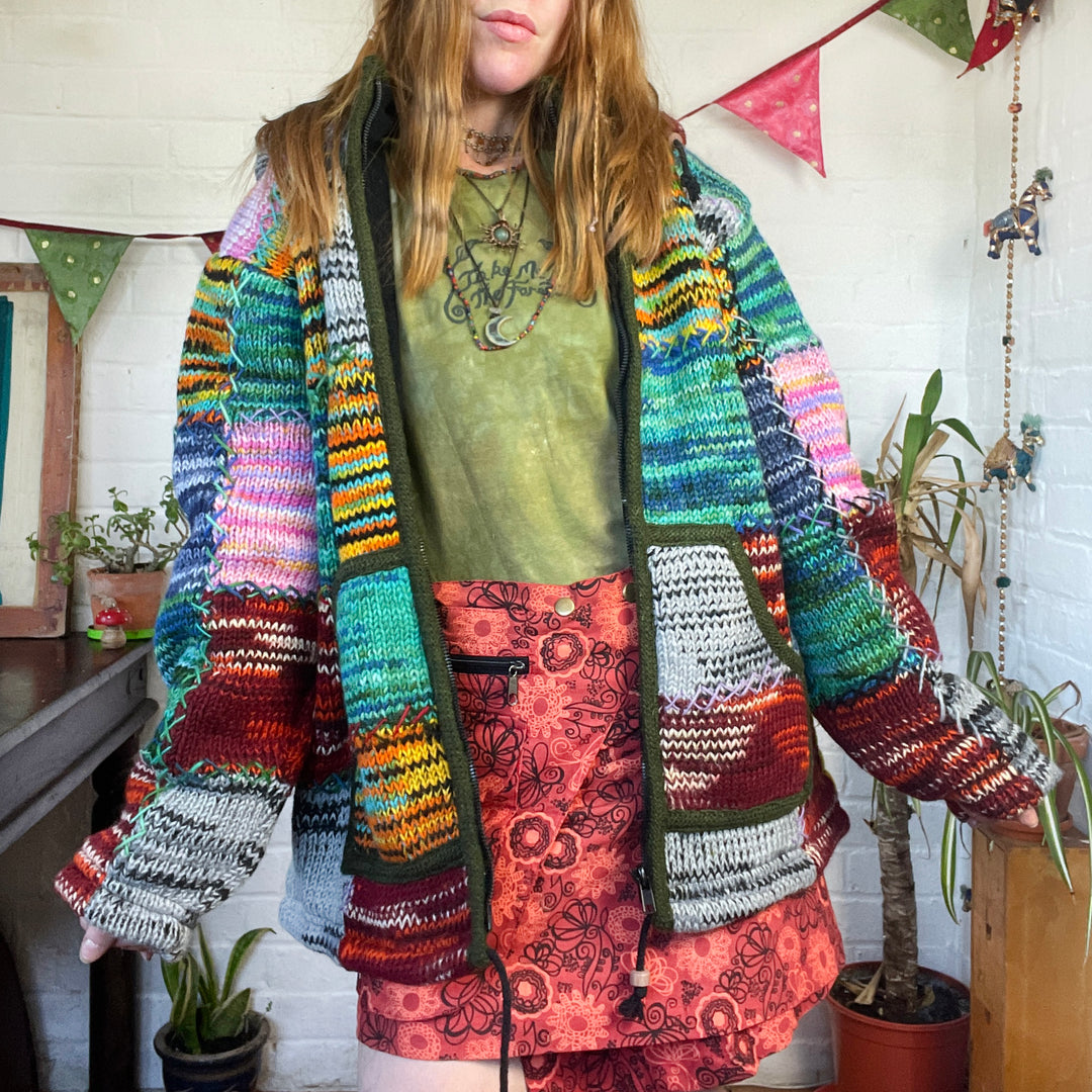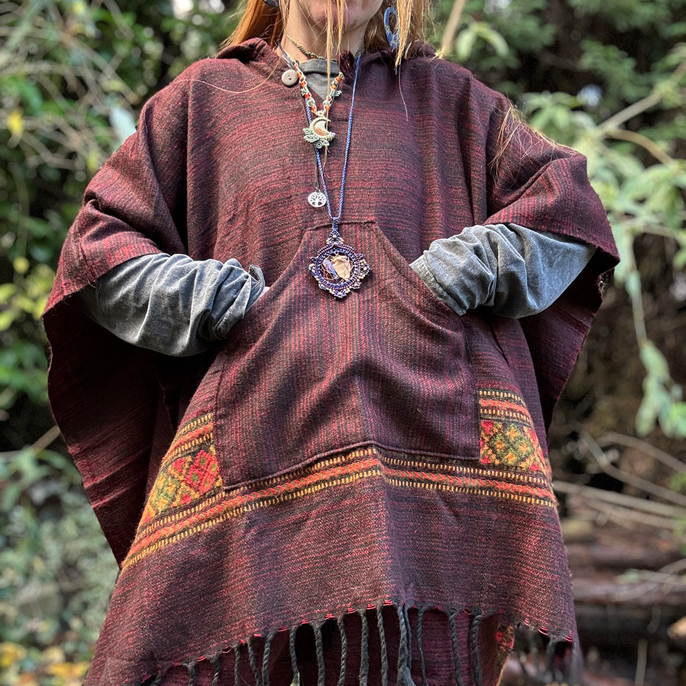 These super cosy warm hoodies have been handmade from super soft vegan acrylic fleece on a Fair Trade basis. Each one has its own unique paisley pattern in gorgeous autumnal earthy tones. They have round hoods, coconut button detail on the front and a front pouch pocket. comes in two sizes Medium & Large. Machine washable on cool cycle and line dry.